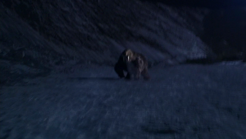 In the TOS episode “Journey to Babel” we learn that, as a child, Spock had a pet sehlat. In “Yesteryear” we get our first glimpse of the animal. Here is the sehlat, I-Chaya (on the left) battling a le-matya in the Forge.