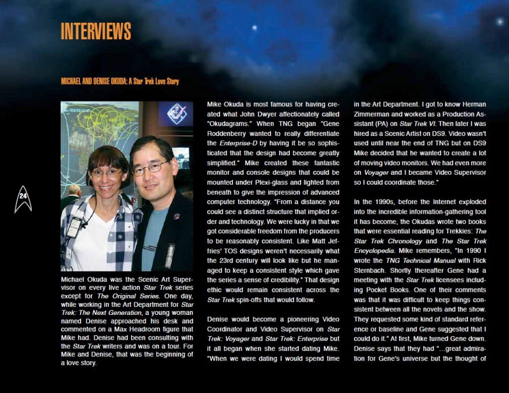 The summer of 2010 was huge for Star Trek prop and costume auctions. Arguably the most memorable and successful of these was the Propworx auction in Las Vegas. Alec Peters asked me to write interviews with Michael and Denise Okuda, Doug Drexler, Rick Sternbach and Marc Zicree for the auction catalogue. It was a fantastic experience!