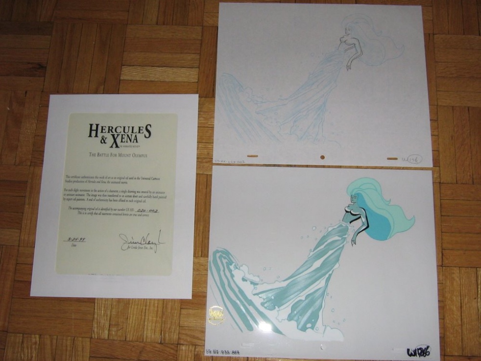 Here’s another piece of animation art from my collection. This sketch and cel features Tethys (Alison Wall) from Hercules and Xena-The Animated Movie: The Battle for Mount Olympus.