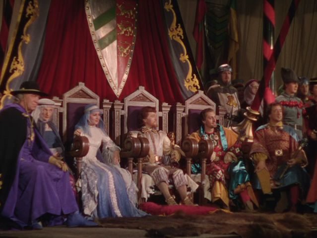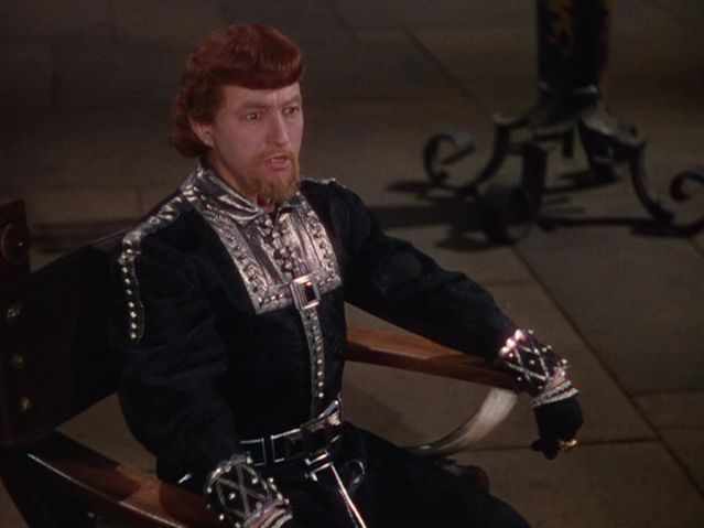 Prince John is played by the great Claude Rains (1889-1967). Rains would go on to play other royal characters: Napoleon III (twice), Julius Caesar and the biblical King Herod. In addition to acting, Rains was also highly sought as an acting teacher. Among his students were Laurence Olivier and John Gielgud, who would themselves go on to play many monarchs.