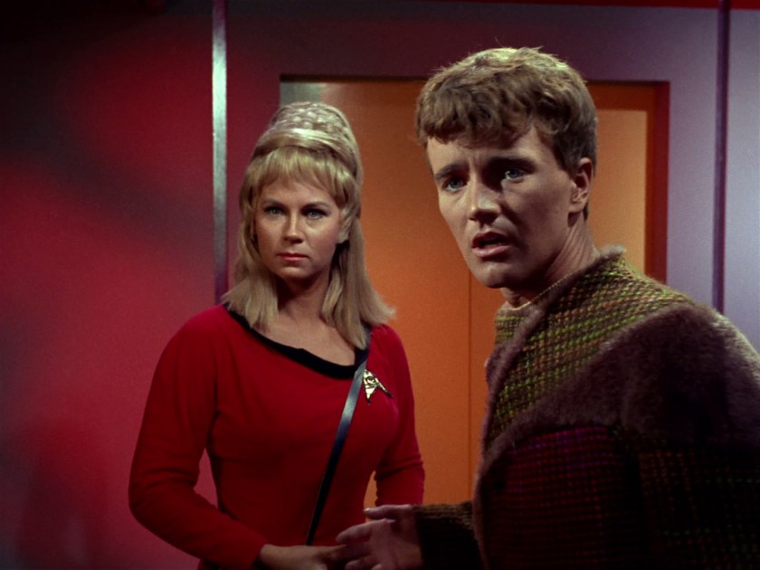This episode was directed by Lawrence Dobkin. It’s the only episode he directed so I would guess that it wasn’t the most positive experience, either for him or for production. Interestingly, 25 years later, Dobkin would appear on screen as Ambassador Kell in the Star Trek: TNG episode “The Mind’s Eye”. I think he’s the only director who made that transition on Trek (there are several actors-turned-directors though). I think the episode is fine. The camera is generally where it needs to be to tell the story, but there aren’t any particularly memorable shots.