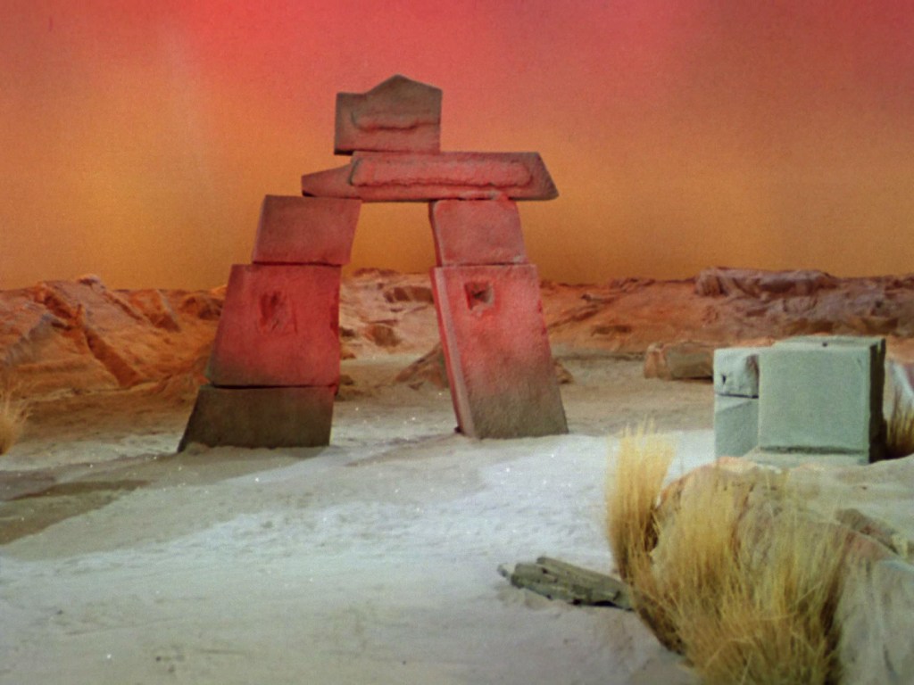 At the beginning of the episode, we see that Matt Jeffries has created ruins on the planet set. As always, he does a great job with very little. In the remastered version of the episode, there is a shot where the fields of ruins are digitally extended.