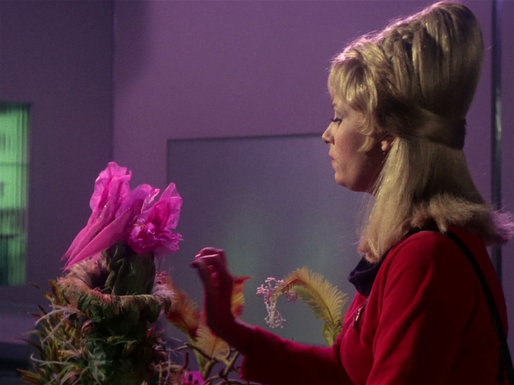 We’re also introduced to Yeoman Janice Rand, munching on some celery while bringing a lunch tray to Sulu in a botany lab. Why she’s serving Sulu lunch is not quite clear. We get to see Sulu as a botanist and we see him later on the bridge, communicating announcements to the entire ship. 5/5