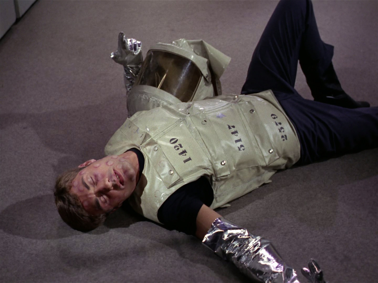 There’s an interesting costume re-used from The Outer Limits. Possibly it’s supposed to be some kind of radiation suit? The variety of costumes seen on the Enterprise feels correct.