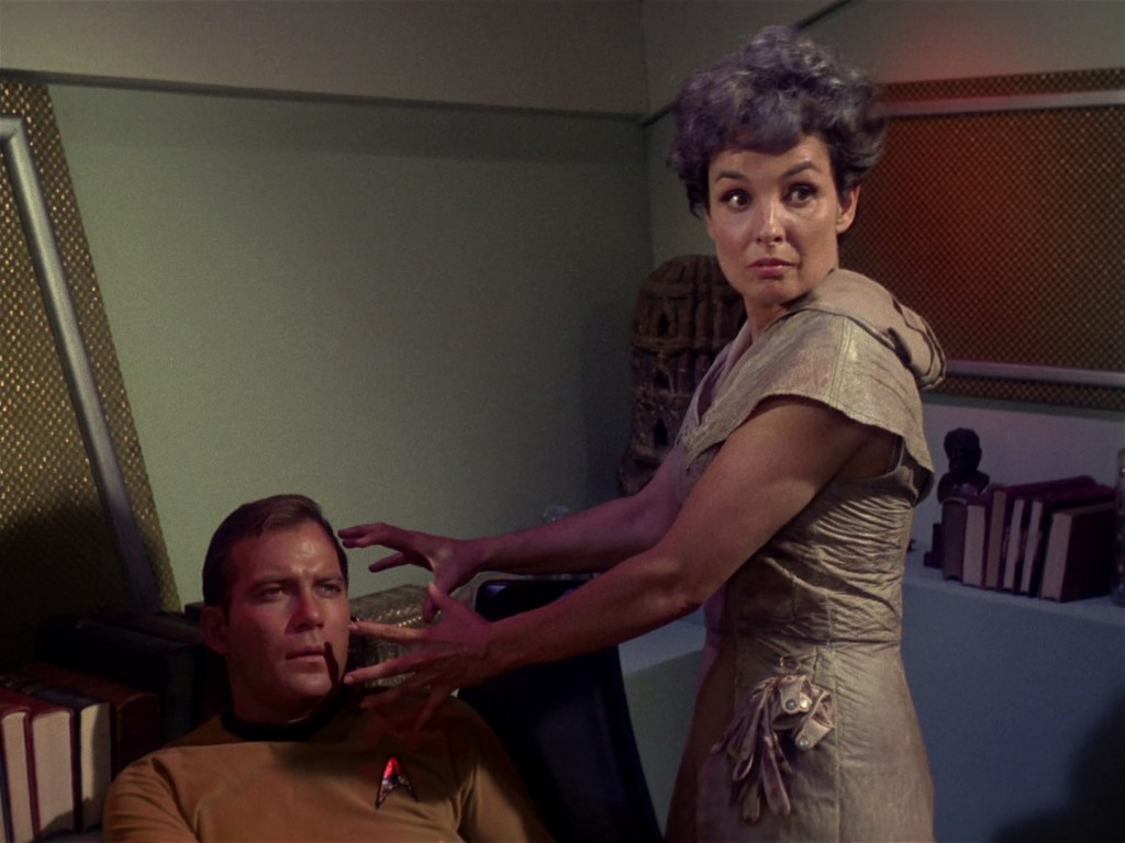 The most notable guest stars are Jeanne Bal as Nancy Crater and Alfred Ryder as Bob Crater. Bob Crater fills a role that will become a bit of a trope; that of a curmudgeonly and eccentric scientist. He’s been on planet M-113 for five years, studying the ancient civilization that once lived there and he’s gone a bit space-happy since his wife was killed by the single remaining native inhabitant. As an aside, xenoarchaeology is my favourite Star Trek science. If I were in Starfleet, that would be what I’d do.